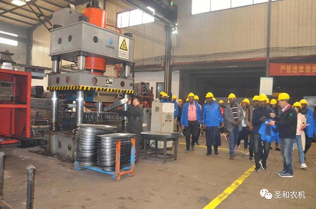 之后,參觀車間生產(chǎn)制造工藝,在過程中講解每一個生產(chǎn)制作環(huán)節(jié),對旋耕機、還田機等多種機具的工作原理、效果與土地適用性作出講解,參觀完畢后客人對圣和公司生產(chǎn)工藝與產(chǎn)品給予高度肯定。