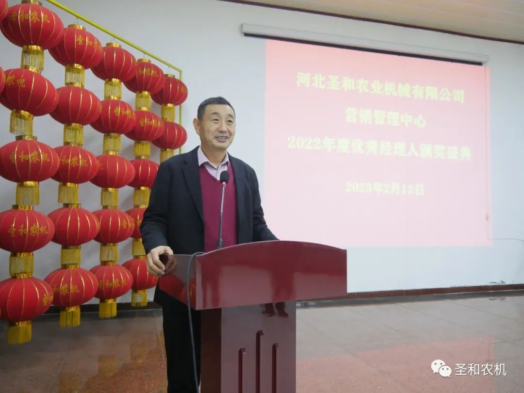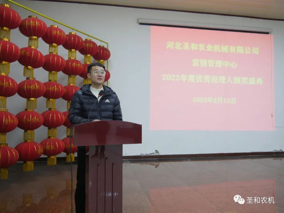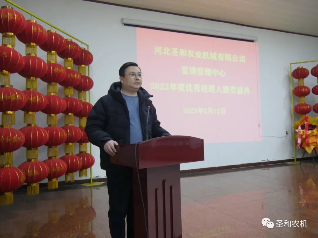 2023年2月12日下午,河北圣和農(nóng)業(yè)機(jī)械有限公司營(yíng)銷(xiāo)管理中心“2022年度優(yōu)秀經(jīng)理人”頒獎(jiǎng)盛典在公司培訓(xùn)大廳隆重舉行。圣和公司領(lǐng)導(dǎo)、各部門(mén)及營(yíng)銷(xiāo)中心全體員工參加了本次盛典。